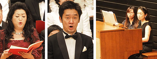 左からメゾソプラノの橘知加子氏、バリトンの西尾岳史氏、オルガンの正富ふさよ氏